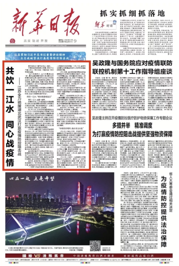 新華日?qǐng)?bào)頭版頭條重磅暖心之作|全力馳援湖北,你是這樣的“硬核”江蘇!